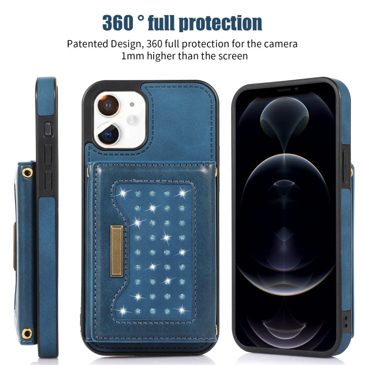 Estuche de Teléfono iPhone 11 Cuero Rfid Tres Pliegues con Cordón (Azul)