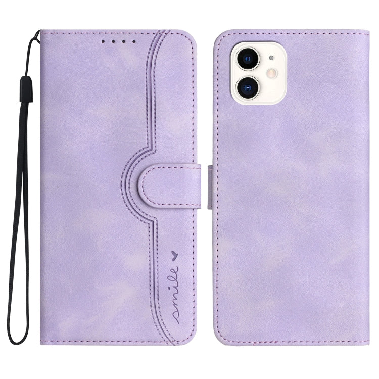 Funda para iPhone 11 Skin Feel Leather con patrón de corazón (Púrpura)