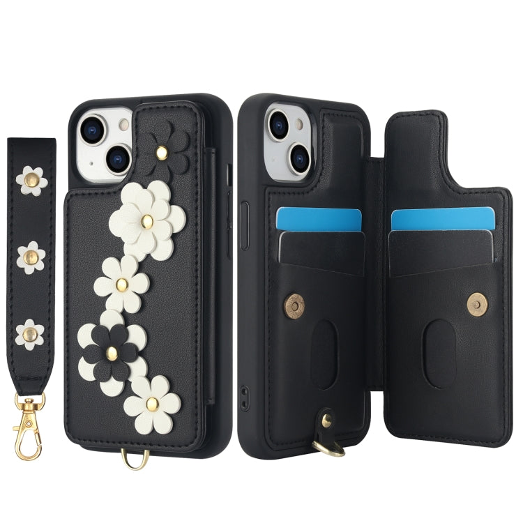 Funda de Cuero para Teléfono iPhone 11 Estampado de Flores Cruzadas (Negro)