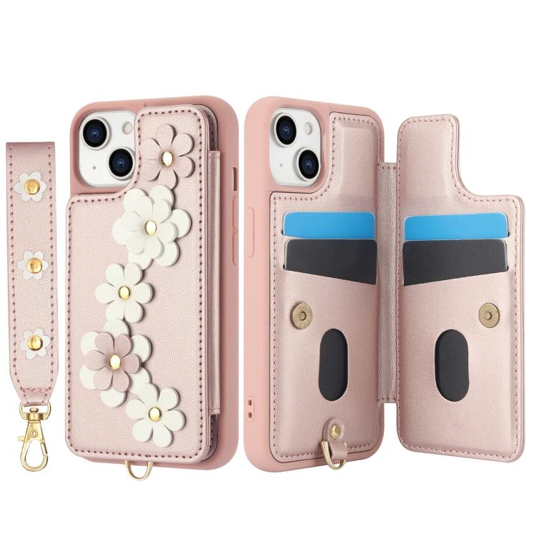 Funda de Cuero para Teléfono iPhone 11 Estampado de Flores Cruzadas (Oro Rosa)