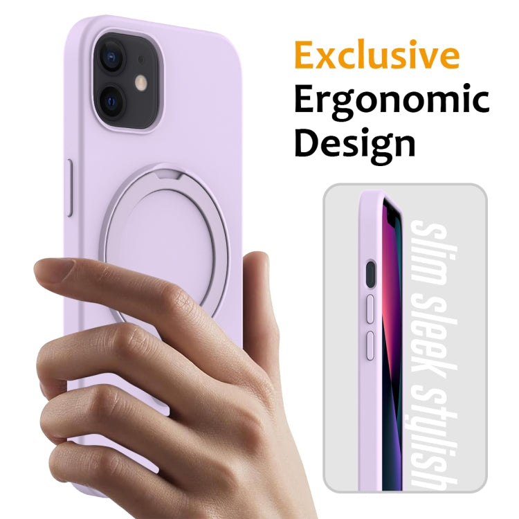 Funda para Teléfono iPhone 11 Magsafe Silicona Líquida Magnética con Soporte para Anillo (Púrpura Lila)