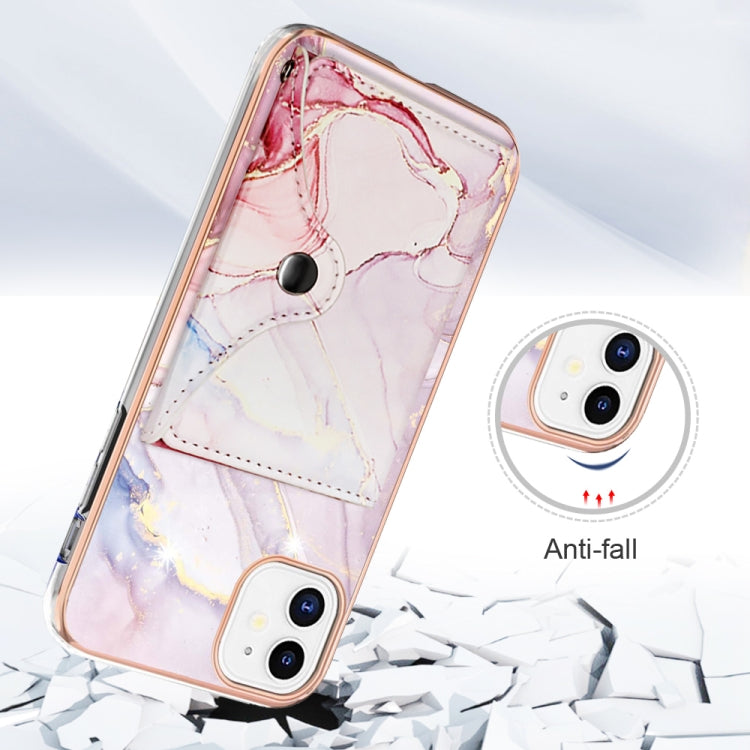 Estuche para teléfono iPhone 11 con ranura para tarjeta IMD patrón mármol (Oro Rosa, Morado)