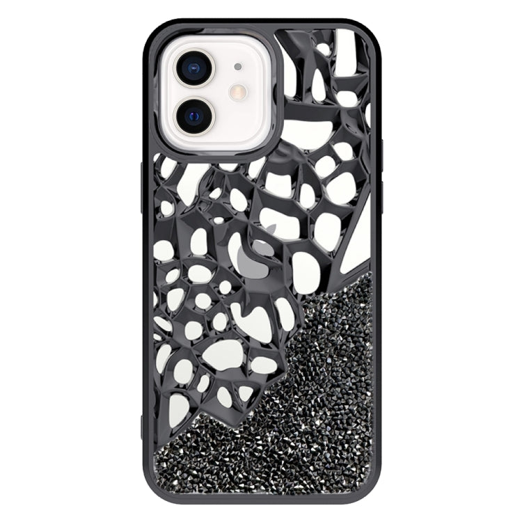 Estuche para teléfono TPU Galvanizado iPhone 12 Disipación de Calor Hueca Estilo Diamante (Negro)