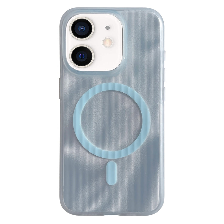 Funda para Teléfono iPhone 12 Magsafe Magnética Sensación de Piel a Rayas (Azul)