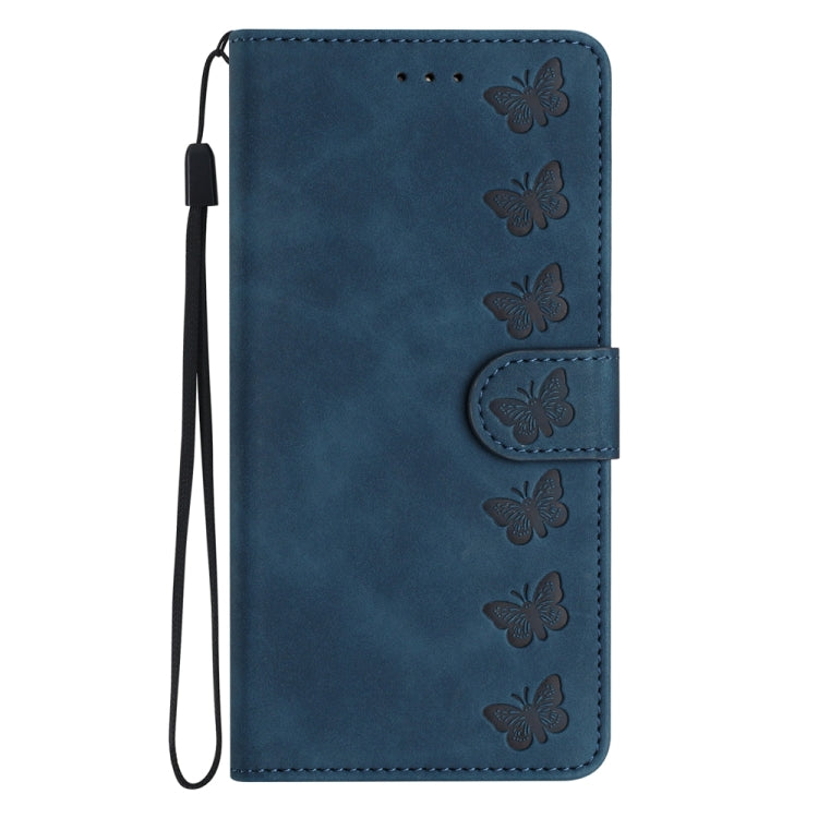Funda para iPhone 12 Mini Seven Butterflies Caja de Teléfono de Cuero En Relieve (Azul)
