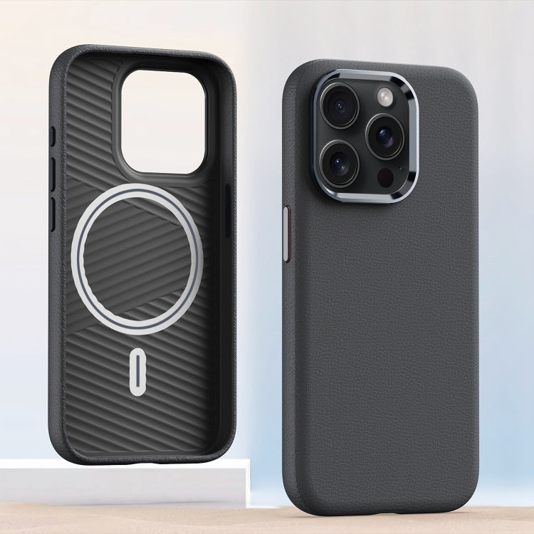 Funda de Teléfono iPhone 12 Pro Max Marco de Lente Metal Magsafe Cuero Cobertura Total (Gris)