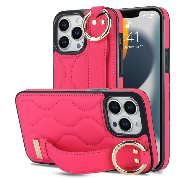 Funda para iPhone 13 Pro Antideslizante de PU con Anillo y Muñequera (Rose Red)