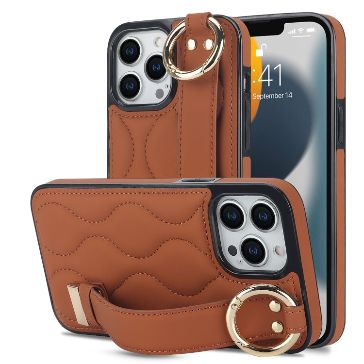 Funda para iPhone 13 Pro Antideslizante de PU con Anillo y Muñequera (Marrón)