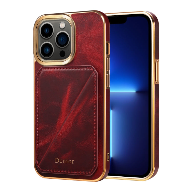 Funda para Teléfono Denior Oil Wax Leather para iPhone 13 Pro con Ranura para Tarjeta (Rojo)