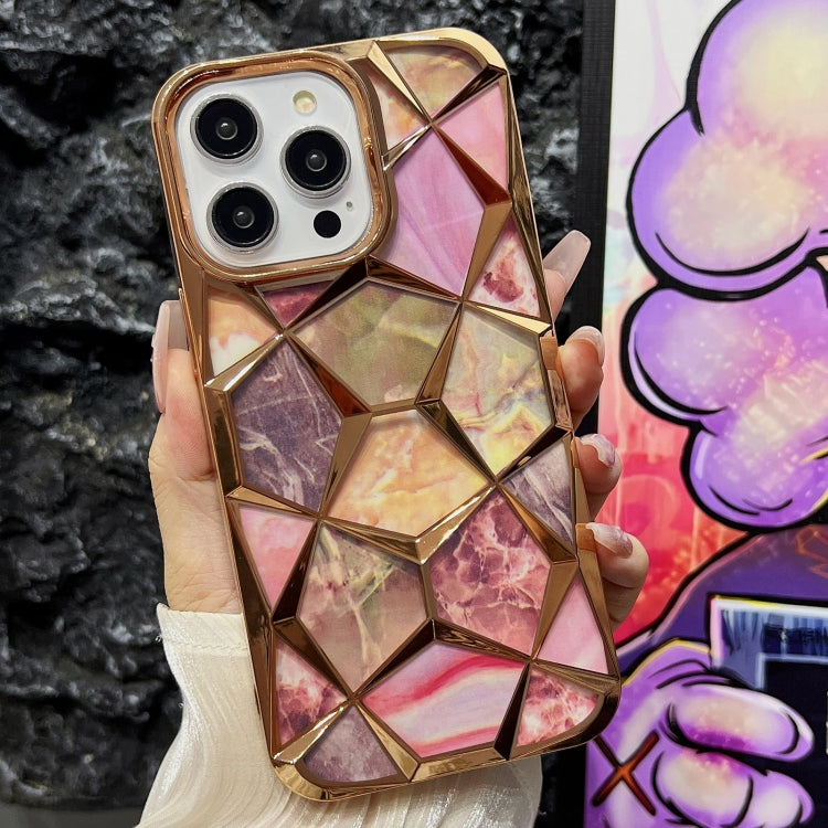 Estuche para teléfono TPU iPhone 13 Pro Water Cube con Galvanoplastia de Mármol (Dorado)