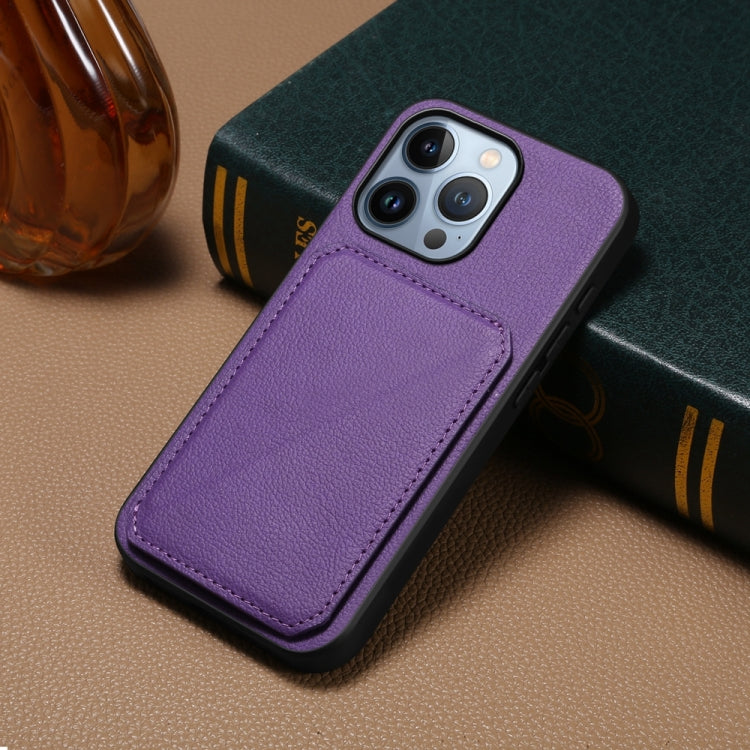 Funda para Teléfono iPhone 13 Pro D04 con Ranura para Tarjeta Dual y Textura de Becerro (Púrpura)