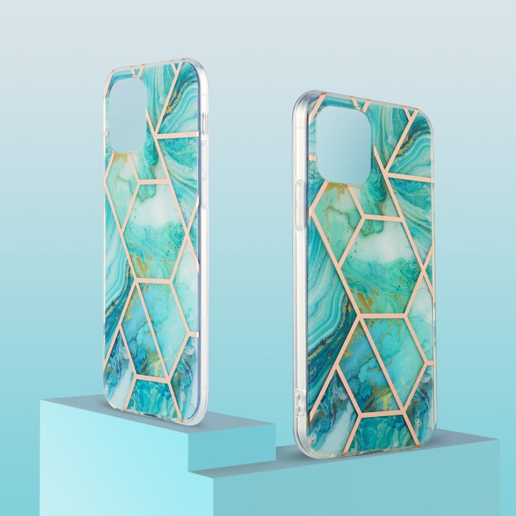 Estuche TPU para iPhone 13 Pro Galvanoplastia Empalme Mármol Patrón Doble Cara con Cordón (Azul Verde)