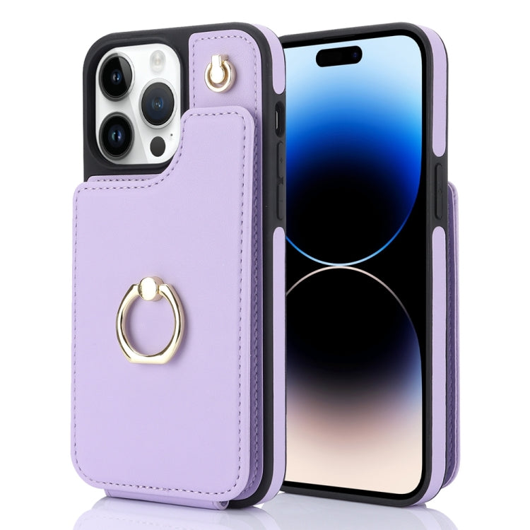 Estuche para teléfono Ym006 para iPhone 14 Pro Max con soporte para anillo y tarjeta (Púrpura)