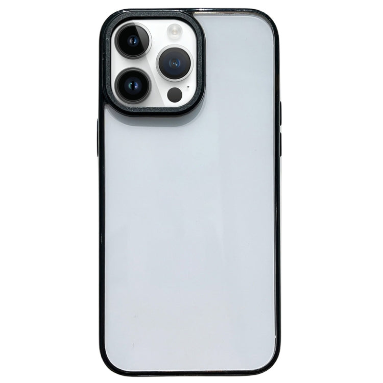 Caja de teléfono TPU para iPhone 14 Pro Max con pintura metálica chapada en cuadros curvos (Negro)