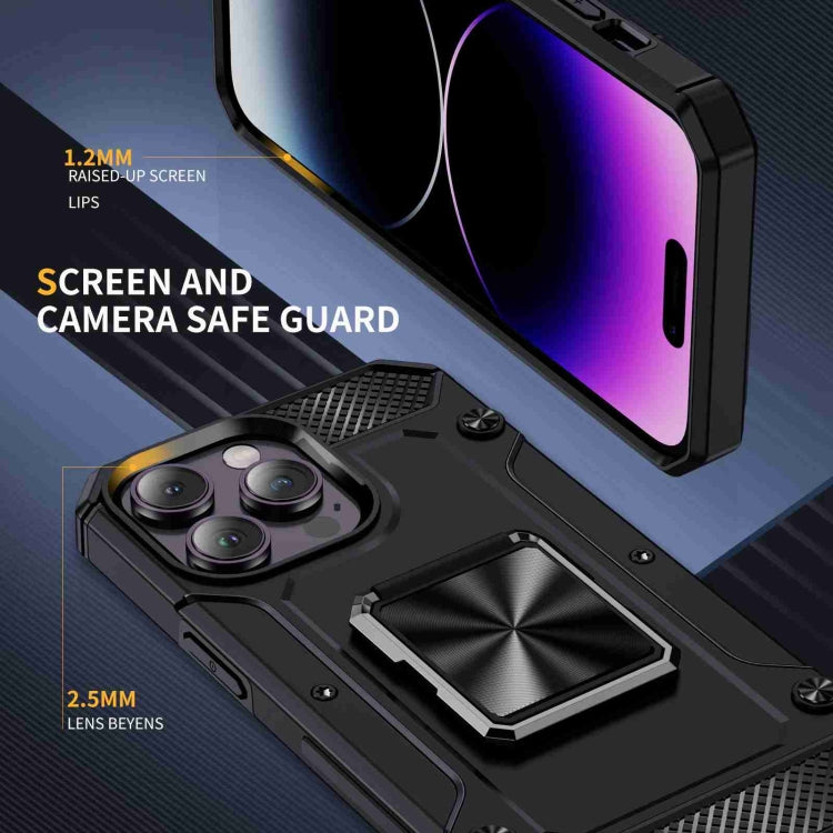 Funda para Teléfono iPhone 14 Pro Max con Soporte de Anillo de Metal a Prueba de Golpes (Negro)
