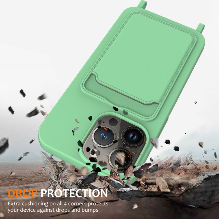 Funda para Teléfono iPhone 14 Pro Max Bolsa para Tarjeta Integrada Silicona Líquida con Cordón (Verde)