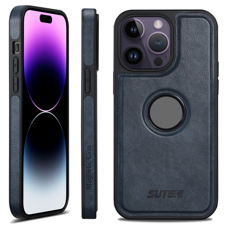 Funda para iPhone 14 Pro Max Suteni G1 Magsafe Cuero Parte Trasera (Azul)