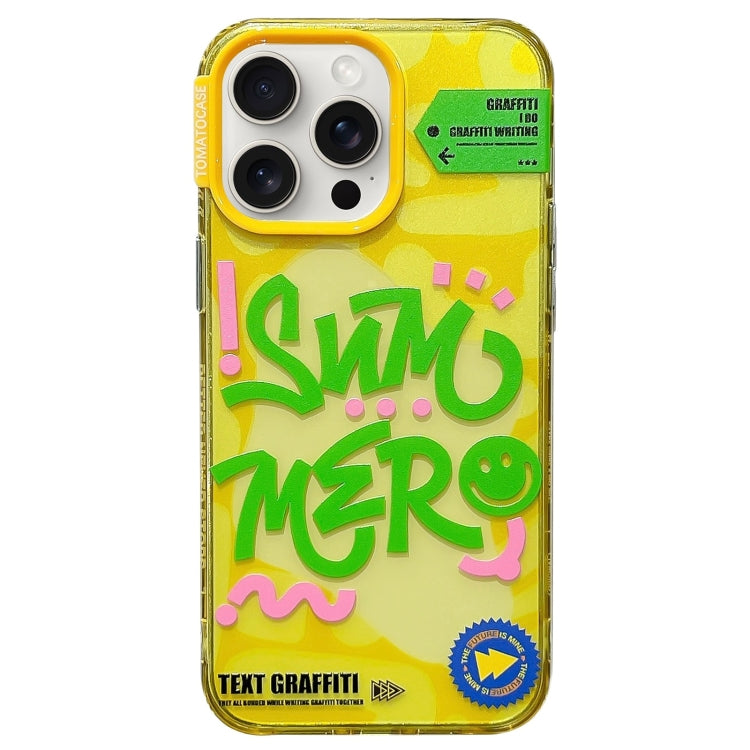 Funda para teléfono iPhone 14 Pro Tomato Text Graffiti TPU Hybrid (Amarillo)
