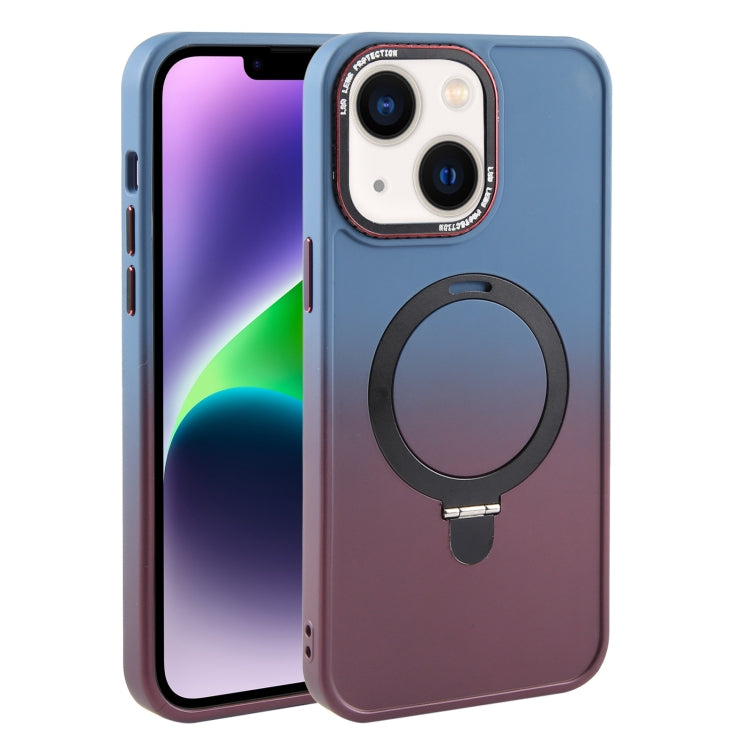 Funda para Teléfono iPhone 14 con Soporte Magsafe Gradiente Silicona Líquida (Azul Morado)