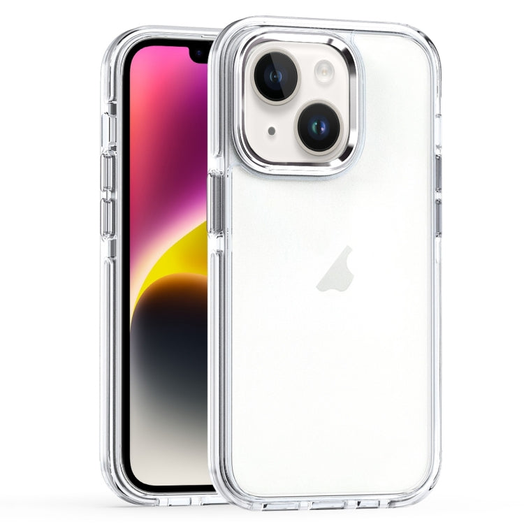 Funda para Teléfono iPhone 14 PC TPU Transparente Dos Colores (Blanco)