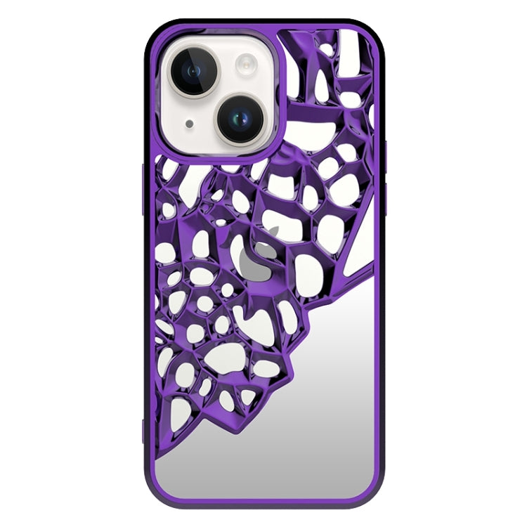 Estuche para teléfono TPU galvanizado iPhone 14 con disipación de calor hueca estilo espejo (Púrpura)