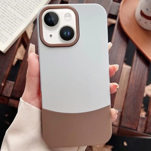 Funda híbrida TPU y PC para iPhone 14 con contraste de color 2 en 1 (Plateada y Marrón)
