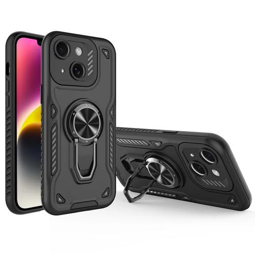 Funda para Teléfono iPhone 14 TPU + PC Soporte Giratorio Metal (Negro)