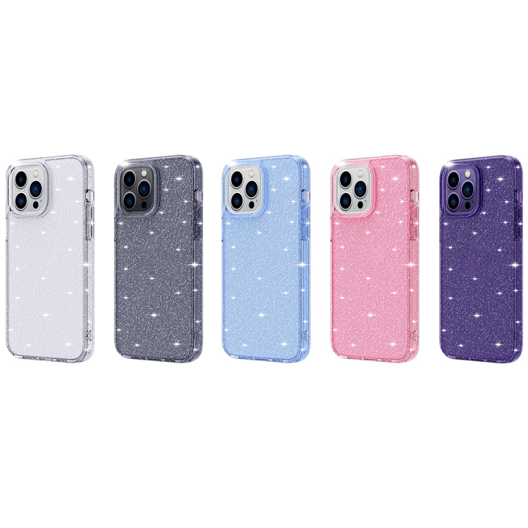 Funda para iPhone 14 Crystal Clear Glitter Airbag Phone Case Transparente Sierra Blue