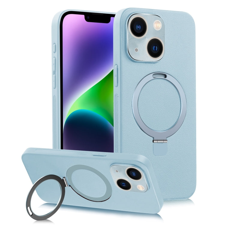 Soporte Magsafe Rotation para iPhone 14 + Funda de Cuero para Teléfono (Blanco)