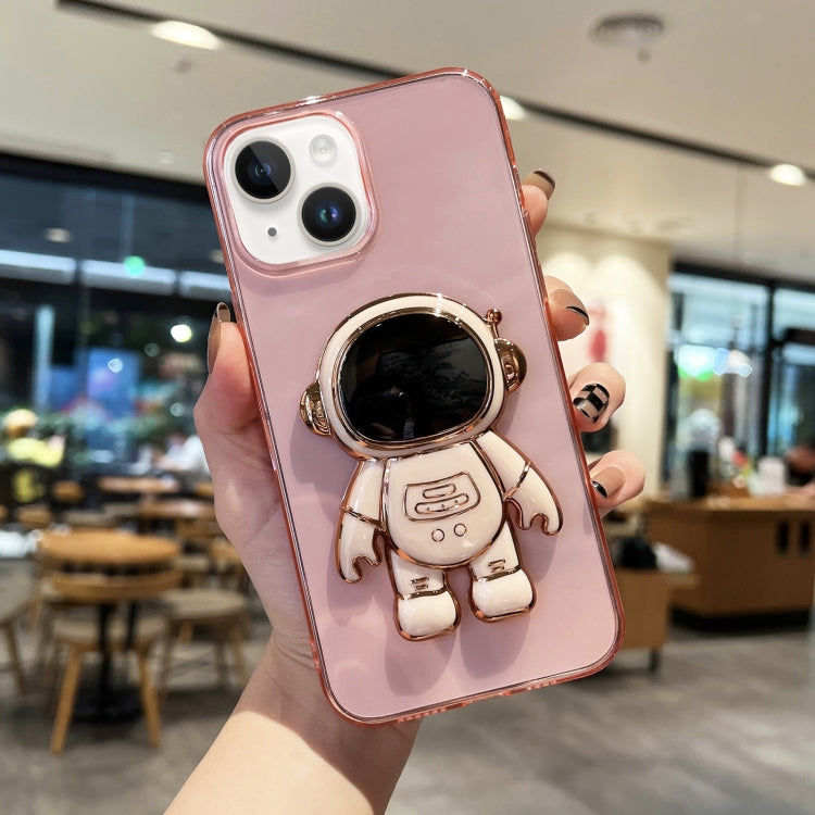 Funda de teléfono para iPhone 14 Plating Astronaut Holder TPU (Rosa)
