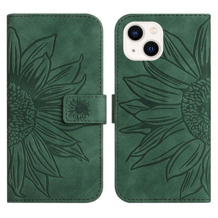 Funda para Teléfono iPhone 14 Skin Feel Sun Flower Pattern Flip Cuero con Cordón (Verde)