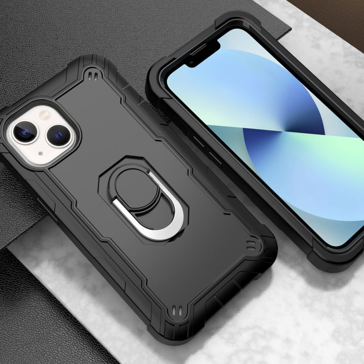 Funda para Teléfono iPhone 14 con Soporte de Anillo Dos Colores (Negro)