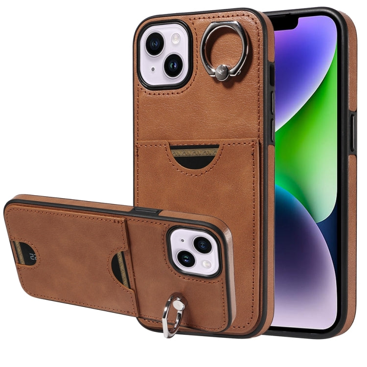 Funda para Teléfono iPhone 15 Plus con Soporte para Anillo y Ranura para Tarjeta (Marrón)