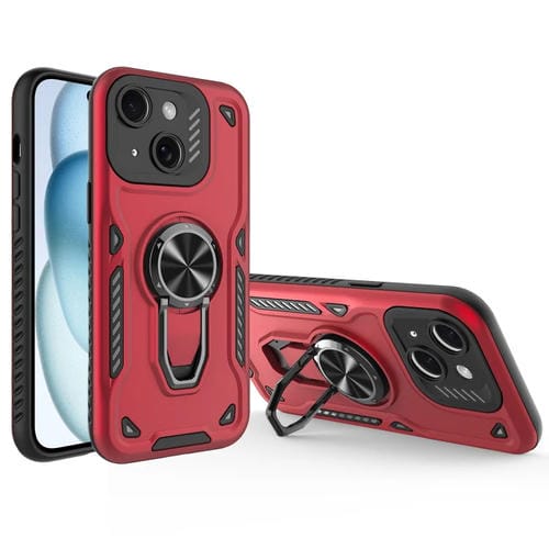 Funda para Teléfono iPhone 15 Plus Soporte Giratorio Metal TPU PC (Rojo)