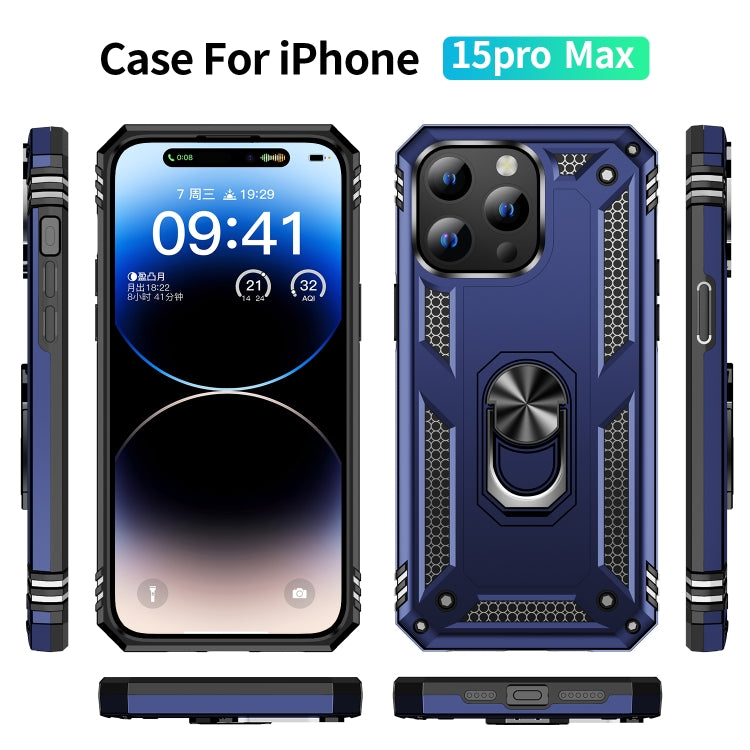 Estuche para Teléfono iPhone 15 Pro Max TPU + PC con Protección de Lente y Soporte para Anillo (Azul)
