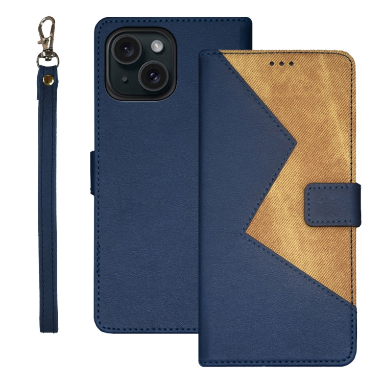 Funda para Teléfono Idewei iPhone 15 Pro Cuero con Empalme de Dos Colores (Azul)