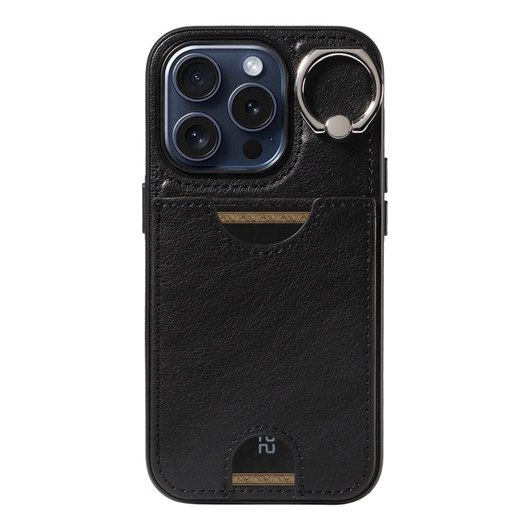 Funda para Teléfono iPhone 15 Pro con Soporte para Anillo y Ranura para Tarjeta (Negro)