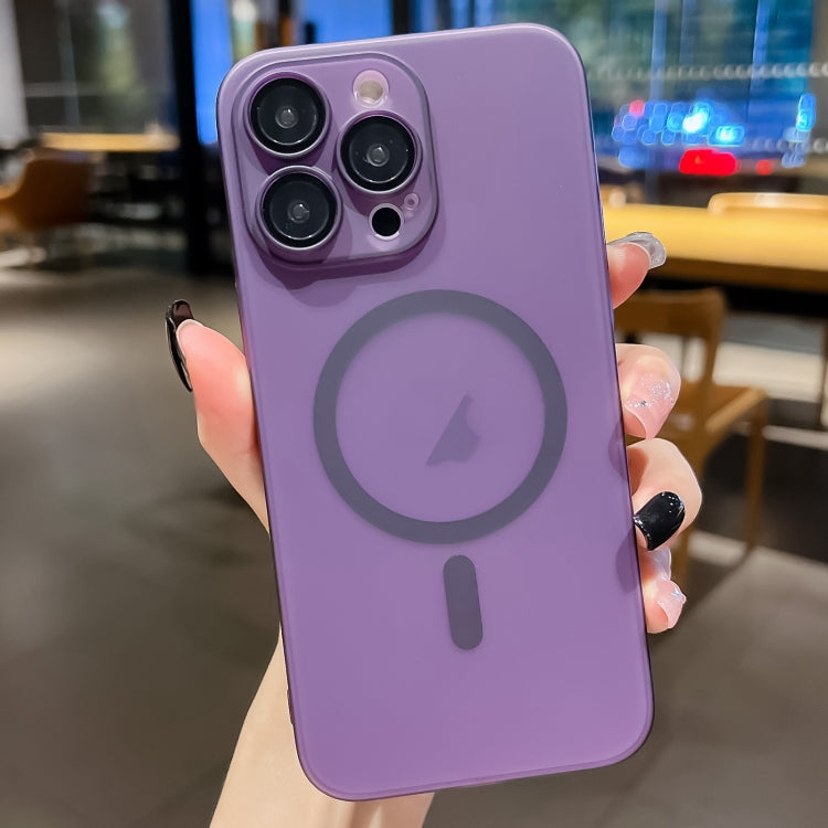 Estuche ultrafino para iPhone 15 Pro con PC esmerilado y Magsafe (Púrpura oscuro Transparente)