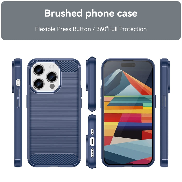Funda de Teléfono TPU Fibra de Carbono para iPhone 15 Pro con Textura Cepillada (Azul)