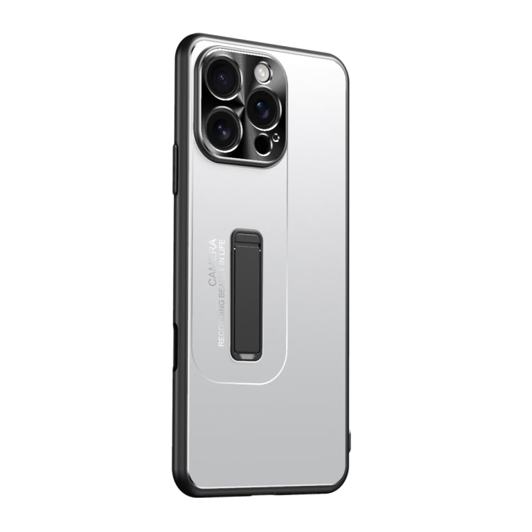 Funda para teléfono híbrida TPU Metal esmerilado iPhone 16 Pro Max (Plateada)