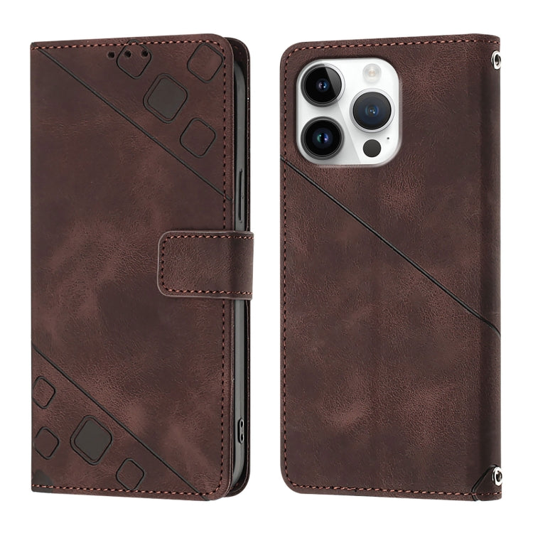 Funda para iPhone 16 Pro Max Cuero Relieve Sensación de Piel (Marrón)