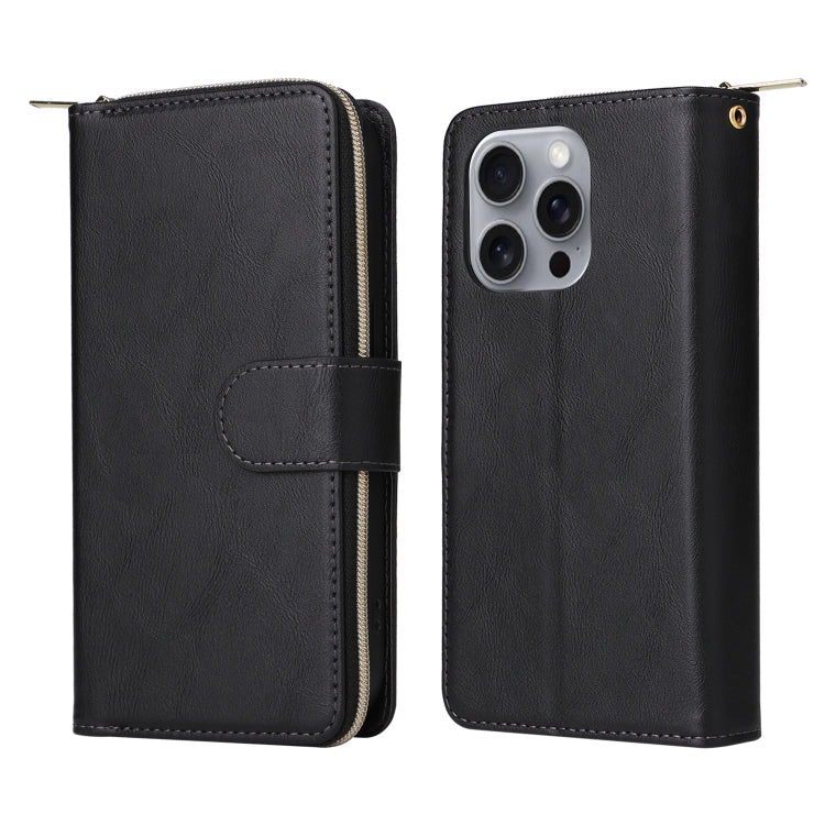 Funda para iPhone 16 Pro Max Bolso Tipo Billetera con 9 Ranuras para Tarjetas y Cremallera (Negro)