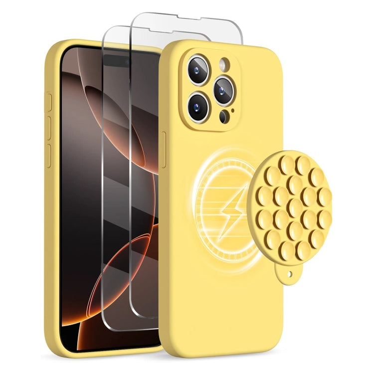 Funda de Silicona con Ventosa Magsafe para iPhone 16 Pro con Película de Pantalla (Amarilla)