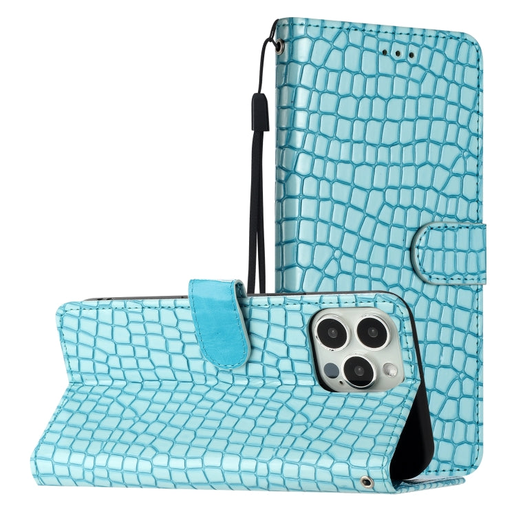Funda de Piel con Tapa Horizontal Textura Cocodrilo para iPhone 16 Pro (Azul Claro)