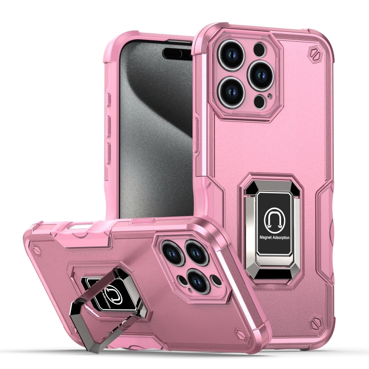 Funda Protectora para iPhone 16 Pro Antideslizante a Prueba de Golpes con Soporte de Anillo (Rosa)