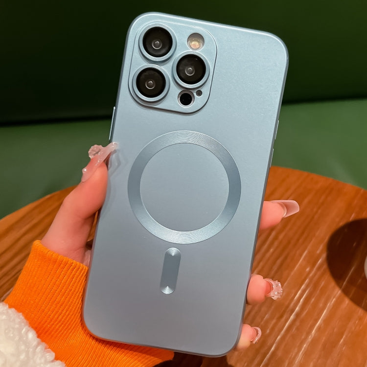 Funda para Teléfono TPU Líquido Magsafe iPhone 16 Pro Pintura Metalizada (Azul)