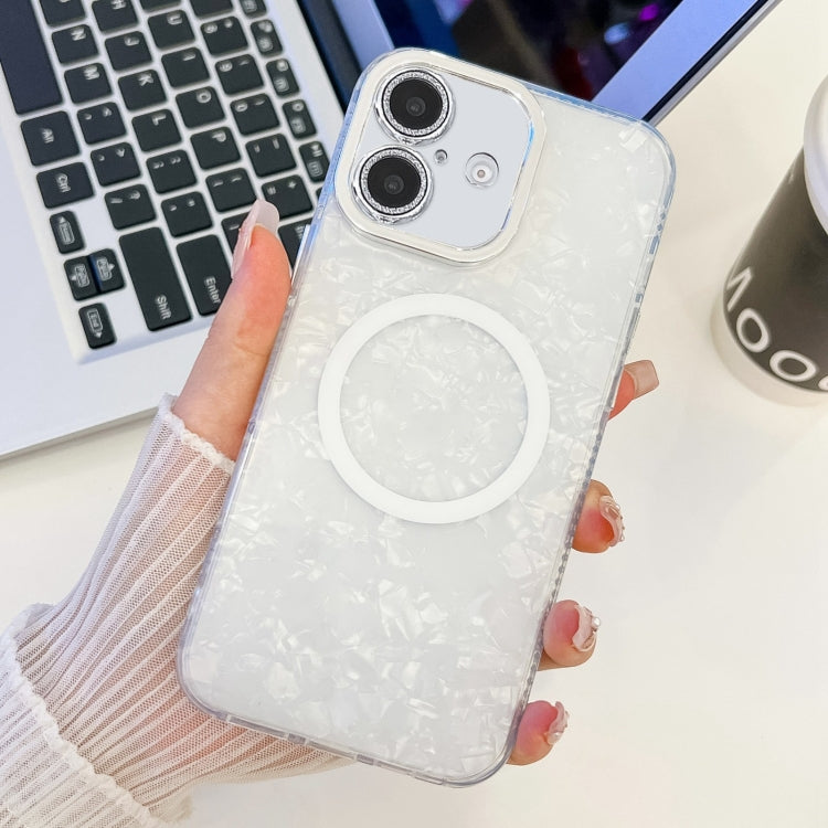 Funda de Teléfono TPU Magsafe para iPhone 16 con Textura Enchapada y Película de Lente (Blanco)