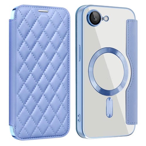 Funda de Cuero para iPhone 16E con Diseño de Rombos y Protección Rfid Magsafe (Azul)
