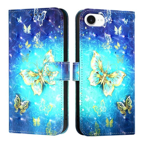 Funda de Cuero con Tapa Horizontal para iPhone 16E (Mariposa Dorada)