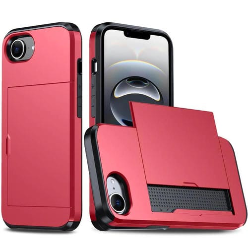 Funda Protectora para iPhone 16E con Ranura para Tarjetas a Prueba de Golpes (Roja)